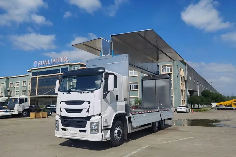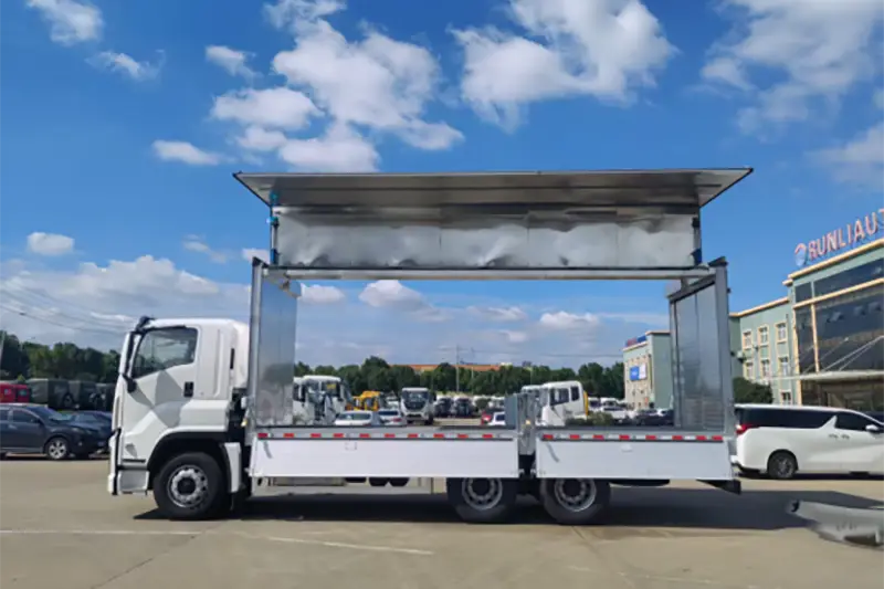 Xe tải Sải cánh bằng hợp kim nhôm Runli, còn được biết đến rộng rãi với tên gọi xe van mở cánh hoặc xe tải thùng mở bên hông, là loại xe tải đặc biệt hiệu suất cao được sửa đổi từ khung gầm Isuzu 6X4 chính hãng, được nâng cấp để giải quyết vấn đề về hiệu quả xếp dỡ thấp đối với hàng hóa lớn, nặng và quá khổ. Không giống như những chiếc xe tải thùng chỉ mở phía sau truyền thống, các tấm bên thùng chở hàng và một nửa mui xe mở ra bằng thủy lực như đôi cánh, tạo ra một khu vực chất hàng ba chiều rộng rãi hỗ trợ xử lý đa hướng từ bên hông, phía trước và phía sau. Nó là một công cụ vận chuyển hậu cần cốt lõi được sử dụng rộng rãi trong phân phối hàng rời toàn cầu, giao hàng thiết bị công nghiệp và vận chuyển nông sản, cân bằng hoàn hảo hiệu quả bảo vệ và xử lý hàng hóa cho người mua bán buôn quốc tế và các doanh nghiệp hậu cần chuyên dụng.