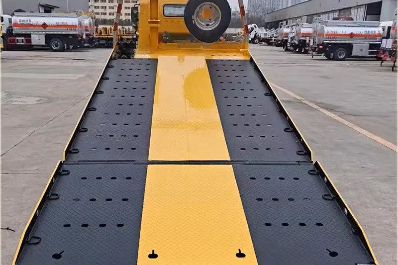 Một chiếc kéo hai chiếc phẳng hiệu quả cao: Áp dụng thiết kế một chiếc hai chiếc phẳng chuyên nghiệp, kích thước tổng thể 5600 × 2400mm, được làm bằng tấm ca rô ép tạo hình một lần 4mm, chống trượt và chịu lực. Nó có thể chở một phương tiện gặp sự cố nặng 4 tấn trên giường và kéo một phương tiện khác ở phía sau, cải thiện đáng kể hiệu quả cứu hộ và vận chuyển, thích ứng với các tình huống cứu hộ đường bộ và đô thị khác nhau.